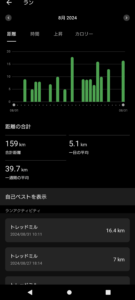 7月は123kmと全然ダメダメでしたが、8月は少し改善されました。