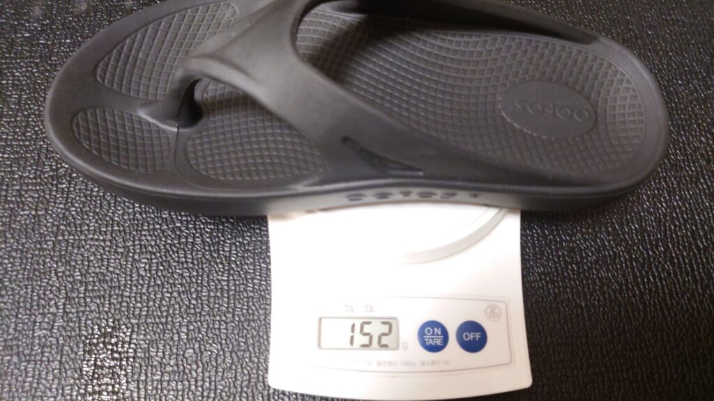 先日購入したSALOMON RELAX BREAK6.0が180gなので、ウーフォスの方が軽量です。