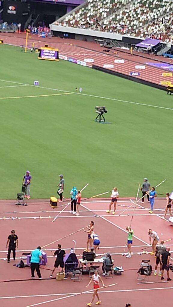 9:00あたりから女子棒高跳びの予選が開始して、TV放送では見ることができない選手のウォーミングアップの様子を見ることができ面白かったです。
