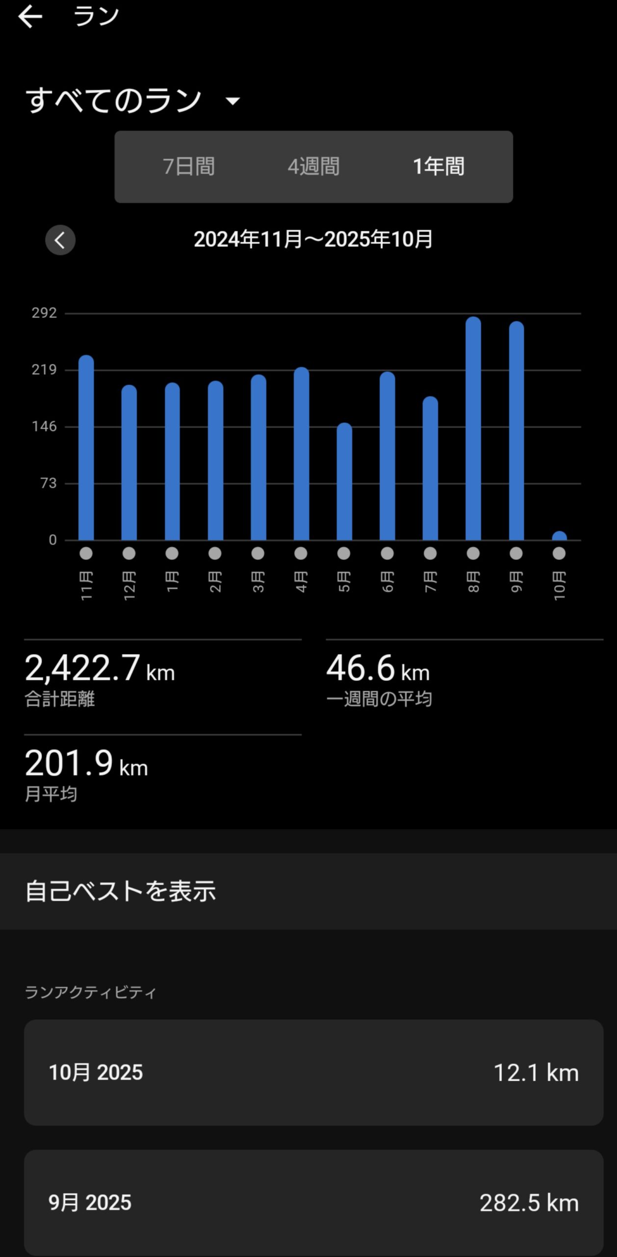 9月に関しても前半は順調だったものの、後半にはたまたま走る予定だった日の直前に下痢になって水分不足で切り上