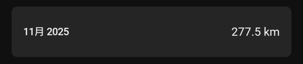 11月は前半が順調に走ることができましたが、帯状疱疹ワクチン(シングリックス:2回目)を接種以降に副作用がきつくて思うように走ることができませんでした。