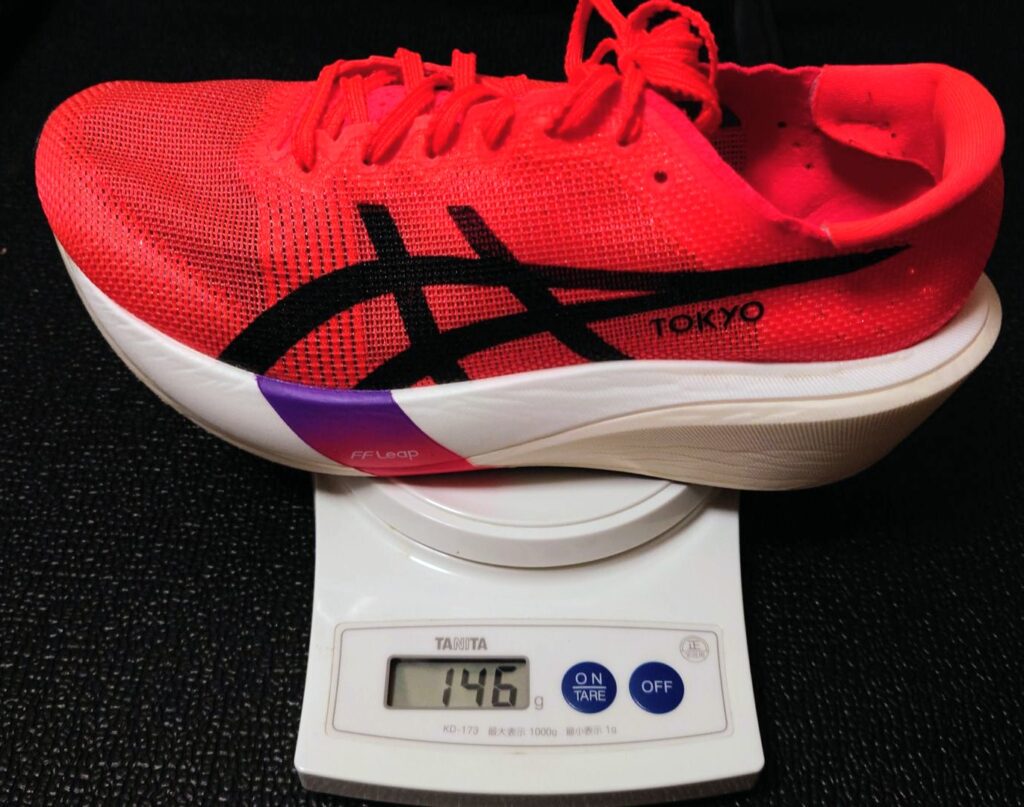 ミッドソールに採用されている素材「FF LEAP」が過去のアシックスのミッドソール素材の中で際立って軽量である証明だと感じています。