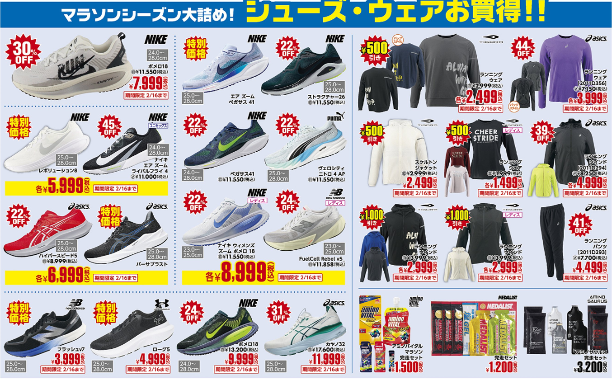 最安値は過去にアルペンオンラインで8999円というのを見た記憶がありますが、1万円以下でズームフライ6が買えるなら超お得です。