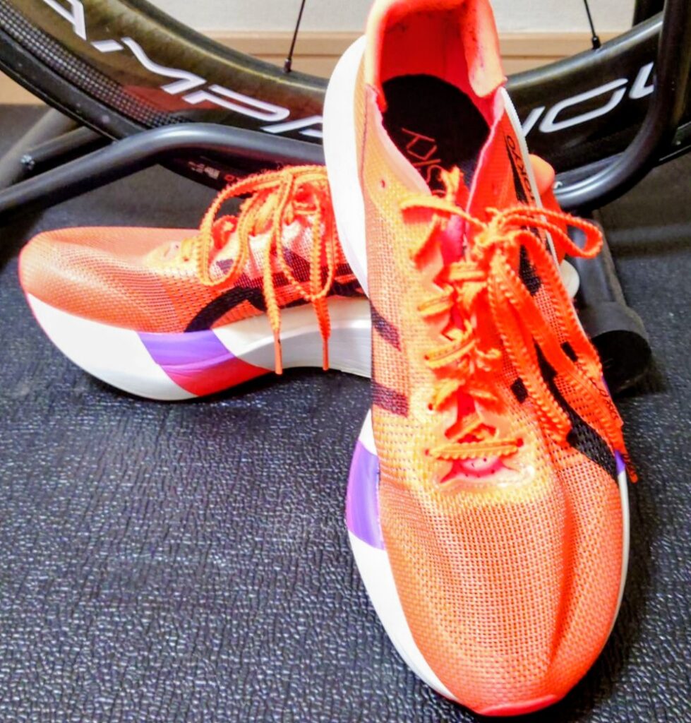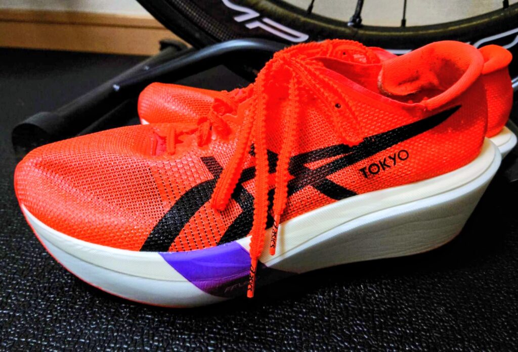 アディオスプロ4も同様のライド感なのですが、メタスピードスカイトーキョーは軽量で不安定さがあるので体幹が強くないと扱いきれないかもしれないと感じました。